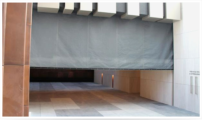 A fire curtain is a fire safety measure curtain that activate in case of a fire, creating a fire resistant barrier that guards and separates a section of a building from fire damage. It prevents spreading fire from one area to another.