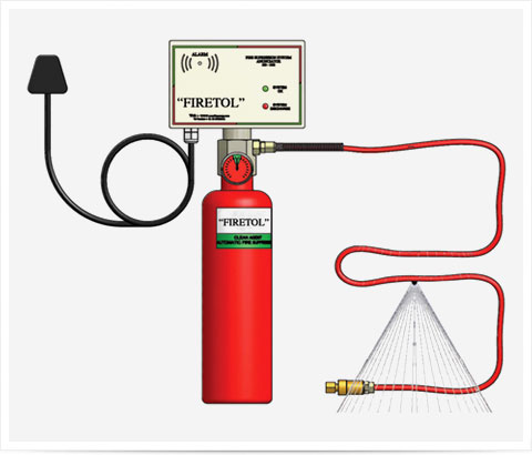 The FIRETOL Direct system is ideal for localised applications such as electrical panels, server racks; industrial machines etc. In the Direct system at the time of fire the heat sensitive polymer tubing attached to the FIRETOL system itself burst at a particular temperature forming a small nozzle & from this nozzle the clean agent extinguishant is released flooding the localised area and instantly douses the fire.